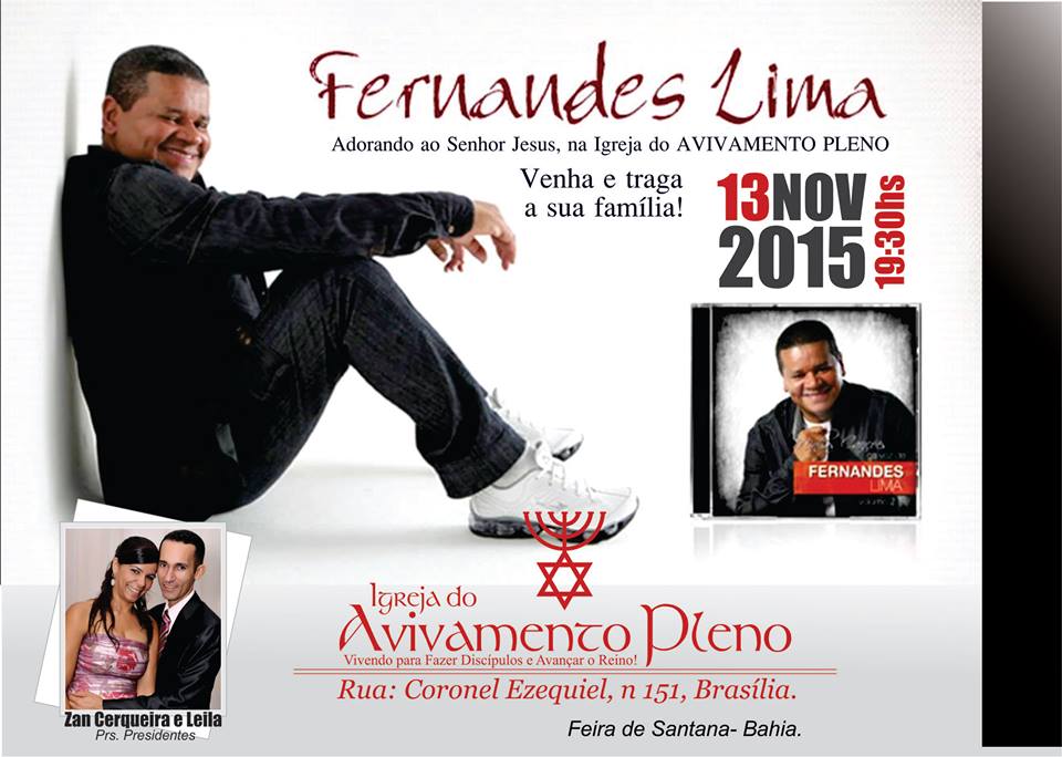 Dia 13/11/15 nesta Sexta-feira às 19:30, estará conosco na IAPI - Igreja do Avivamento Pleno Internacional, o Pastor Fernandes Lima. Venha, traga sua família, amigos e adore ao Deus Vivo conosco.