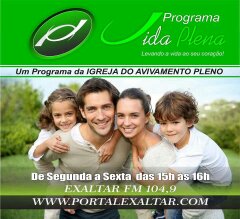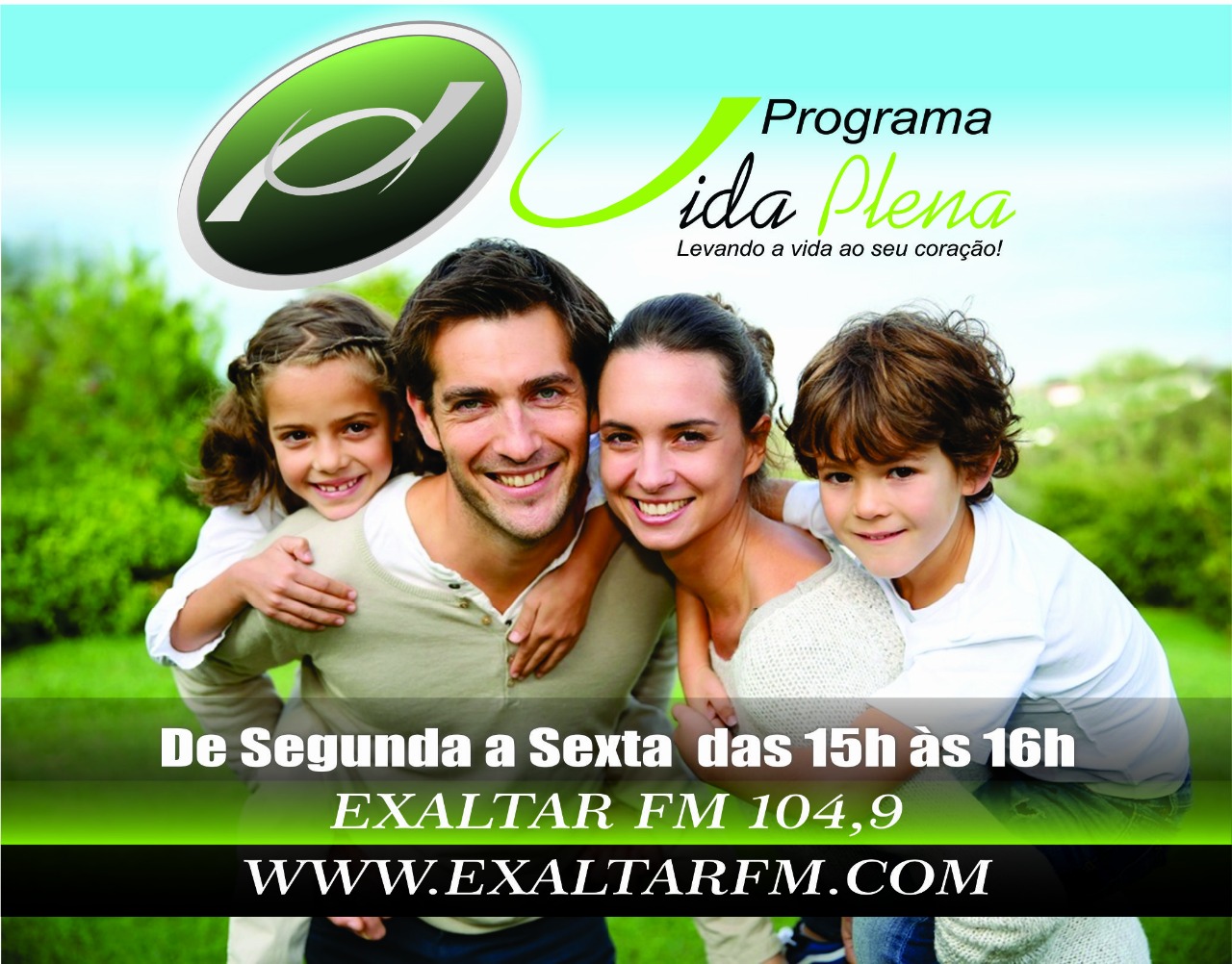 Não perca o Programa Vida Plena de segunda a sexta de 15:00 às 16 Hs, com a Direção geral do Espírito Santo de Deus e ministrado pelos Pastores abençoados Zan Cerqueira e Luiz Cleiton. Acompanhe pelo rádio na frequência de 104.9 ou pelo site: www.portalexaltar.com