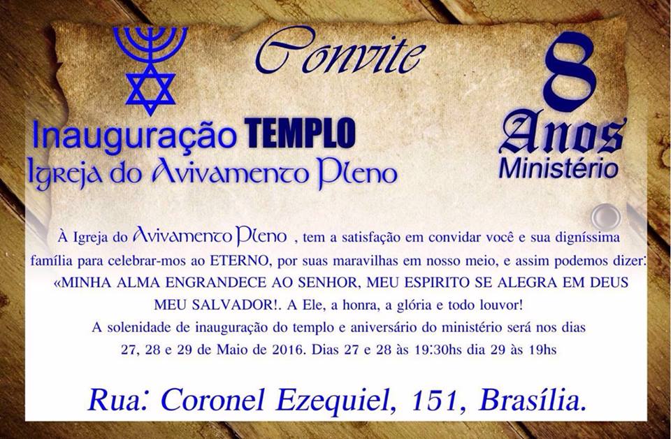 Acompahe as notícias da Festividade do 8º Ano de Ministério e Inauguração do Templo na sessão especial no Menu do Site